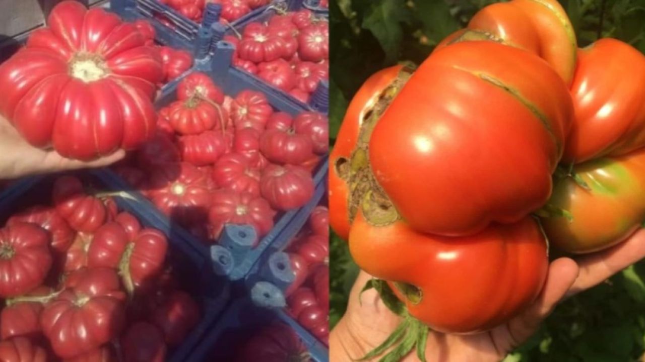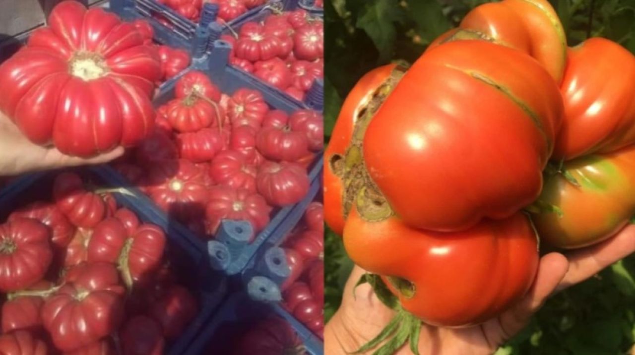 Devasa büyüklükteki domatesleri görenler şaşırıyor.