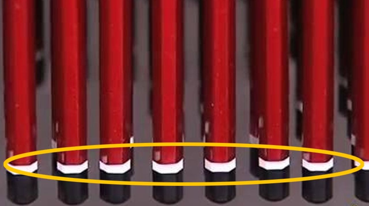 Makineden çıkan kalemler tutkala batırılıyor. Böylece pürüzsüz ve oval bir görünüm elde ediliyor.