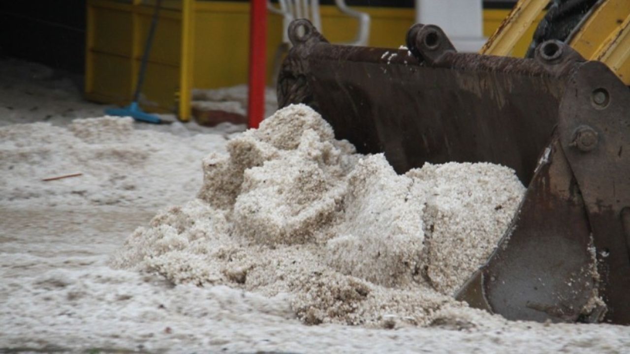 Dükkan önlerinde ve cadde kenarlarındaki dolu tanelerinin oluşturduğu yığınlar için seferber olan Beyşehir Belediyesine ait kepçeler dolu yığınlarını kamyonlara doldurarak bölgeden uzaklaştırdı.
