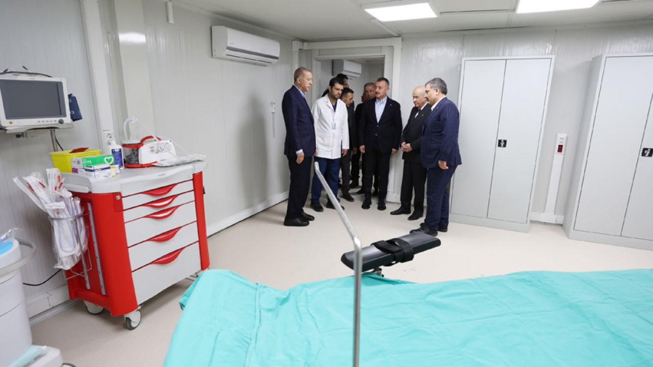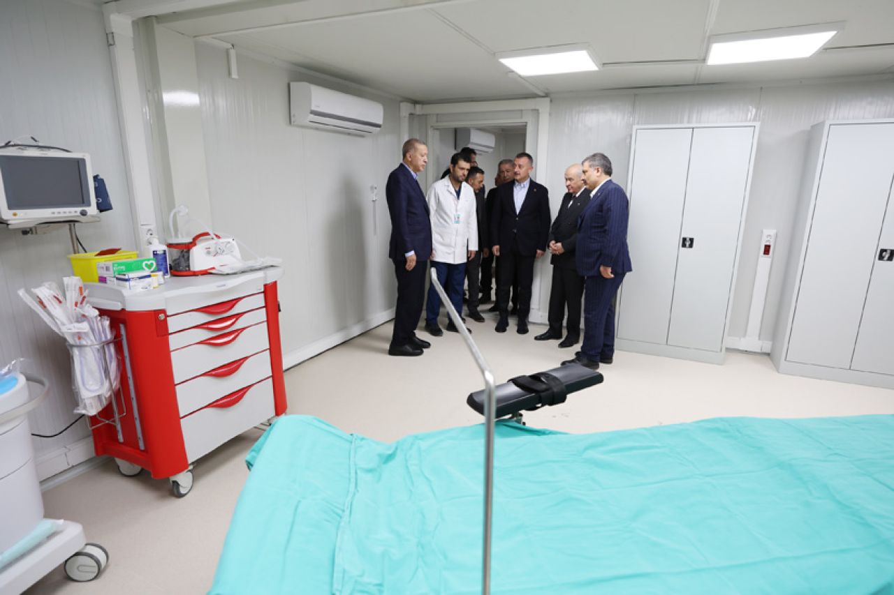 Cumhurbaşkanı Recep Tayyip Erdoğan ve MHP lideri Devlet Bahçeli, deprem bölgesi Hatay Defne'de kurulan sahra hastanesini ziyaret ederek, yetkililerden bilgi aldı.