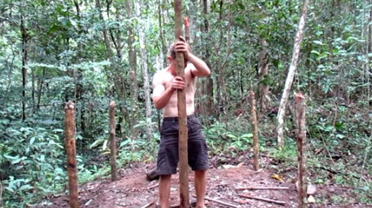 Bölgeyi belirledi ve uygun noktalara açtığı deliklere odunları yerleştirdi..