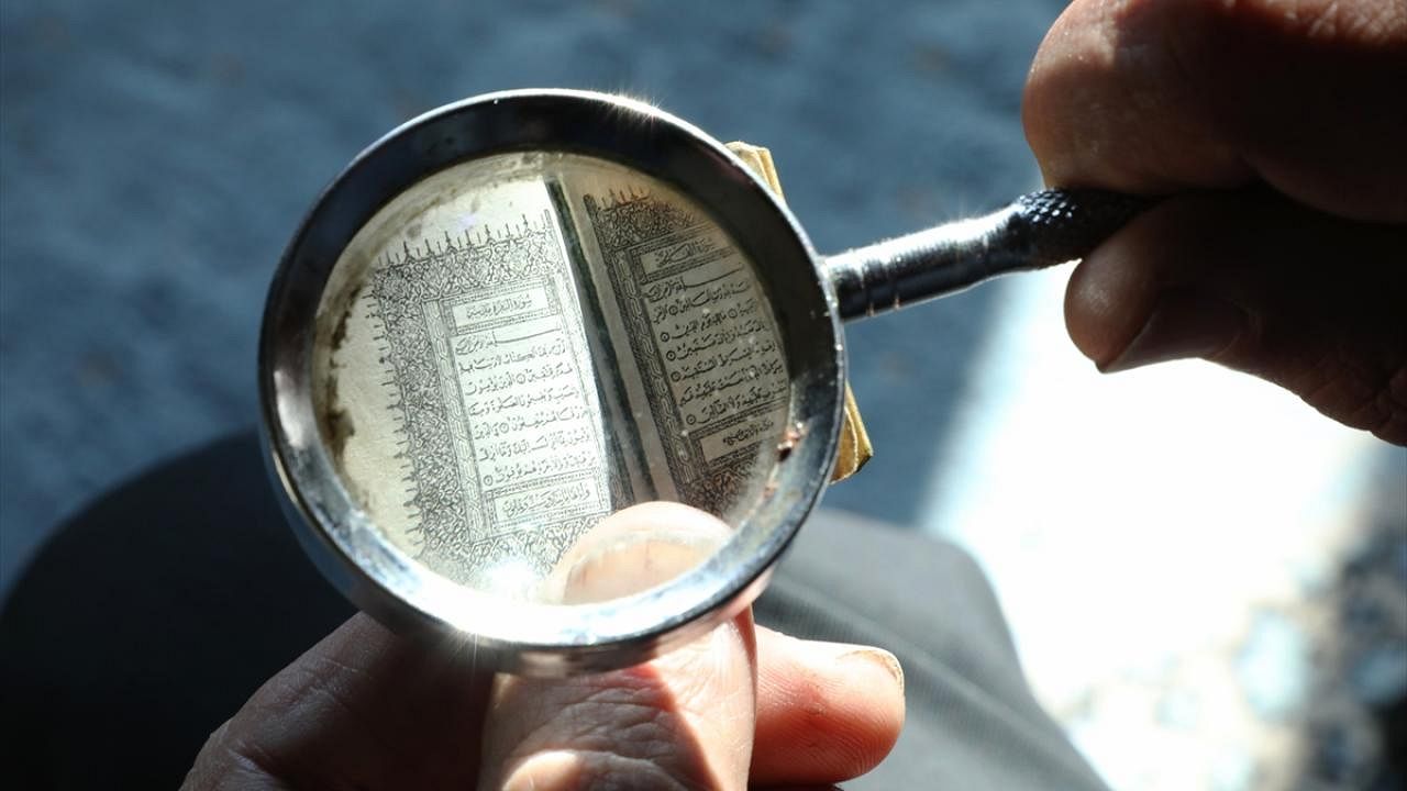 Kuran-ı Kerim`de yazıların çok küçük olması nedeniyle sadece büyüteçle okunabiliyor.