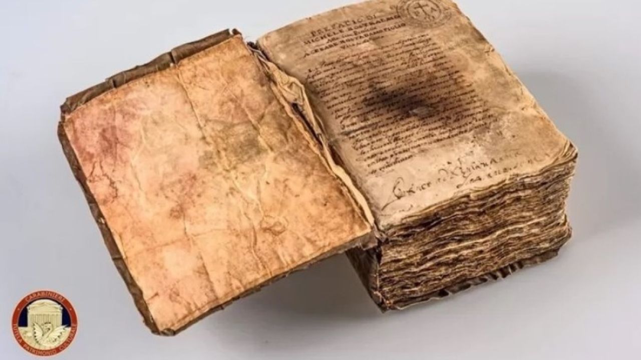 u003cbu003eYILLAR SONRA İZİ BULUNDUu003c/bu003e16. yüzyıldan kalma, yaklaşık 500 sayfalık el yazması eserin çalındıktan sonra Fransa'ya götürüldüğü ve burada bir bit pazarında satıldıktan sonra Almanya'ya ulaştığı belirlendi. Almanya'nın Stuttgart kentindeki bir müzayede evi geçen yıl kitabı açık artırmaya çıkarınca İtalya'nın kültürel miras koruma ekipleri eserin izini buldu.Müzayede evinin internet sitesinde yayımladığı fotoğraflardan birinde, kitabın üzerindeki bir damga görülüyordu. Bu damga, 1991'de Barnabiti Tarih Araştırmaları Merkezi Kütüphanesi'ne dahil edilen SS. Blasi Cairoli del Urbe Kütüphanesi'ne aitti.Bu bulgu üzerine İtalyan Carabinieri güçlerine bağlı Kültürel Mirasın Korunması Komutanlığı, Alman makamlarıyla temasa geçerek eserin iadesini istedi. 12 bin euro açılış fiyatıyla açık artırmaya çıkarılan kitabın satışı durduruldu.