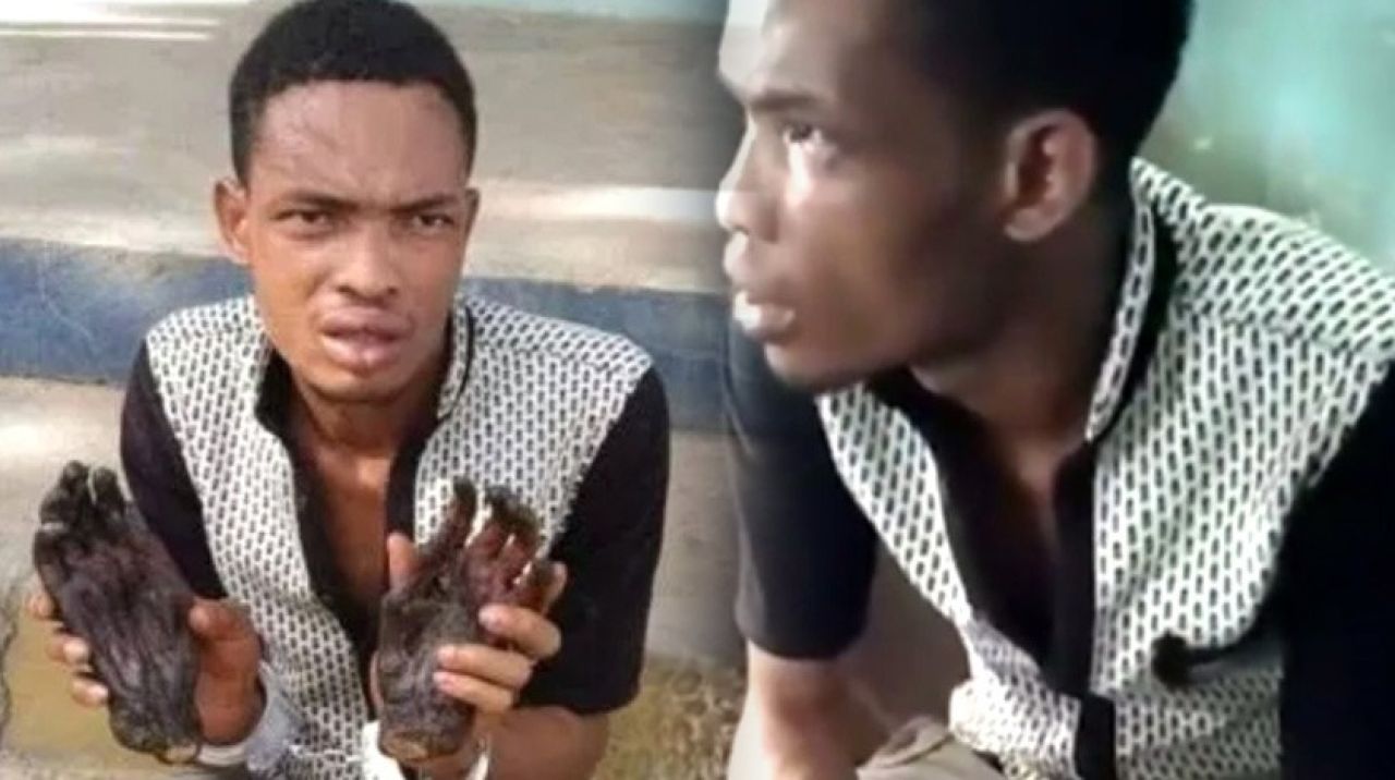 Şüphelinin, kurutulmuş elleri Okemesi Ekiti bölgesinde bir mezarlıkta bulduğunu ve elleri para ayinlerinde kullanmayı planladığını itiraf ettiği belirtildi.