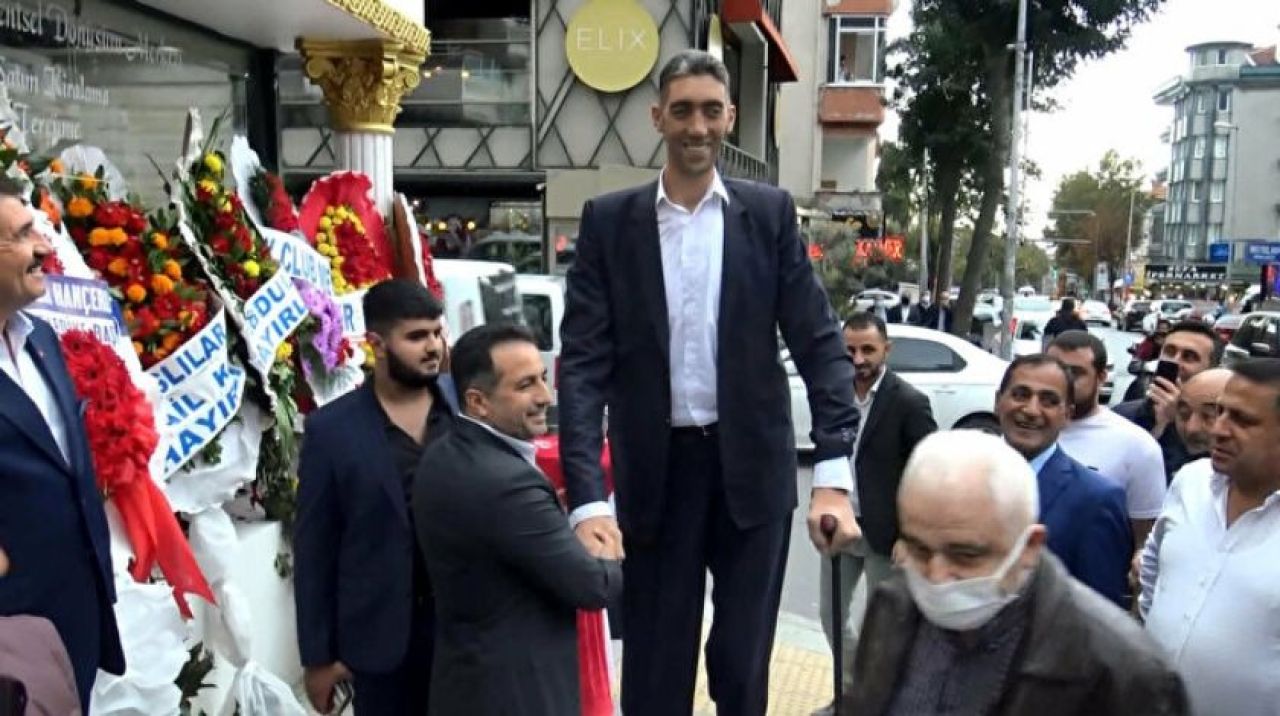 Açılış törenine gelenler, dünyanın en uzun adamı ile fotoğraf çektirmek için büyük çaba harcadı.