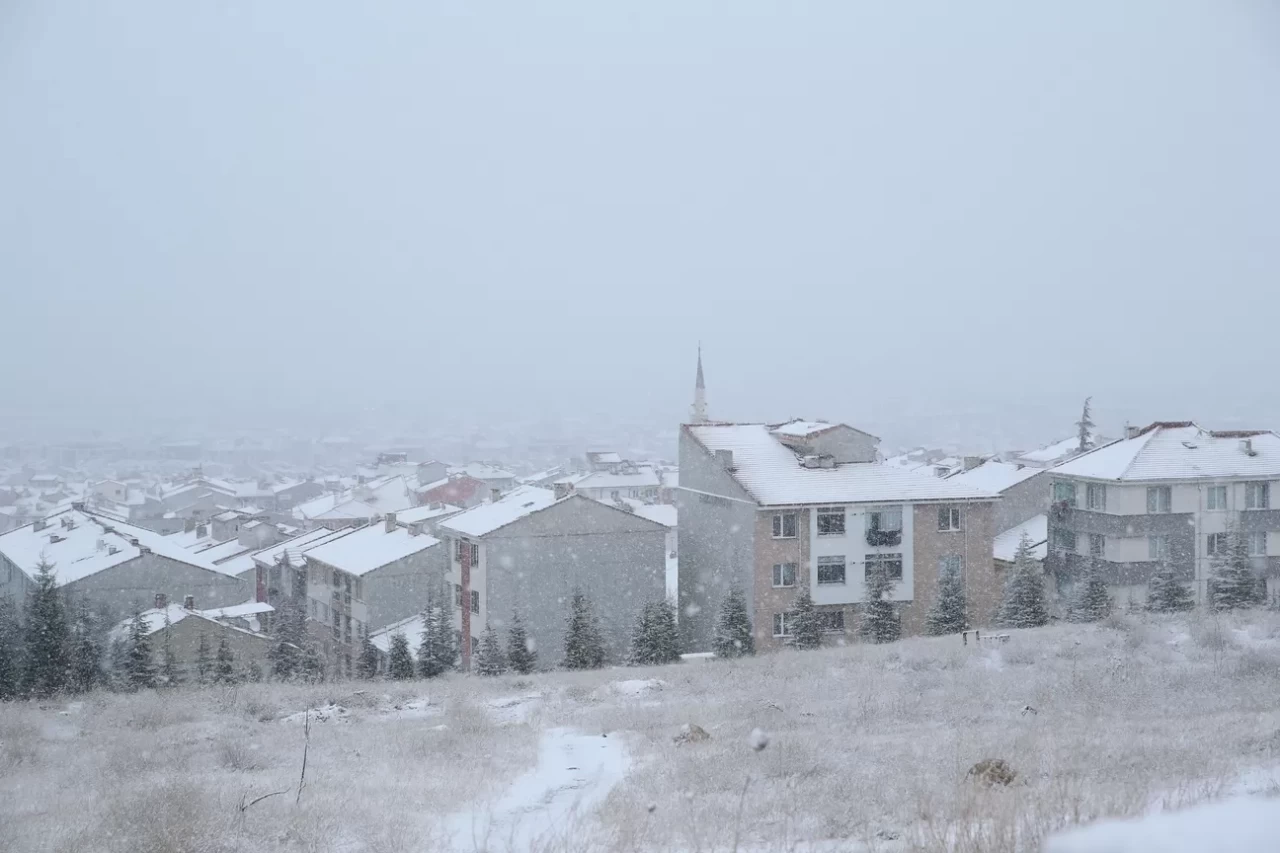 Hava sıcaklığının en düşük sıfırın altında 3 ve en yüksek sıfır derece ölçüldüğü kentte binaların çatıları, araçlar ve bitkiler karla örtüldü.