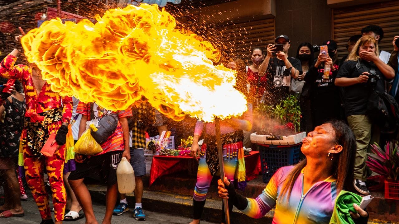 Filipinler`in başkenti Manila`da bulunan Çin Kasabası`nda, Çin Yeni Yılı kutlamaları kapsamında düzenlenen gösteride ateş dansçıları da performans sergiledi.