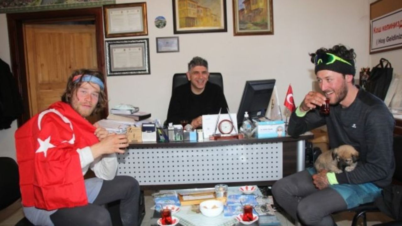 Guillaume Riguccini ve Chorly Boilley de Fransa'dan başladıkları yolculuklarında, yanlarında köpek yavrusu ile ilçeye geldi.