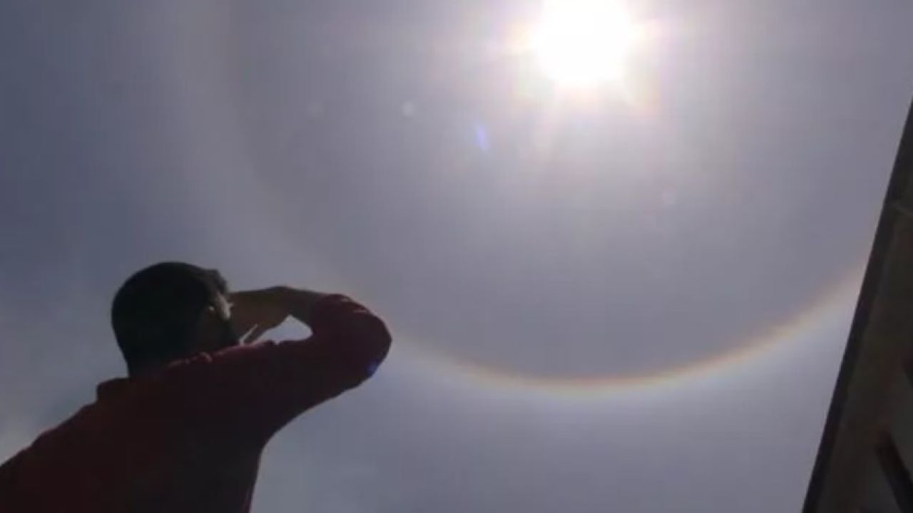 Güneş çıplak gözle görülebilirken güneşin çevresinde oluşan, gökuşağını andıran halka şaşkınlığa neden oldu.