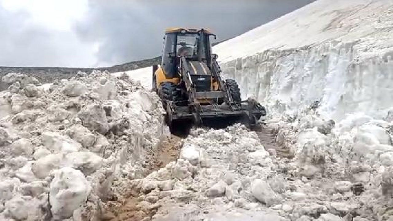 Kars İl Özel İdaresi ekiplerinin, Haziran ayında yüksek rakımlı yaylalarda başlattığı karla mücadele devam ediyor.