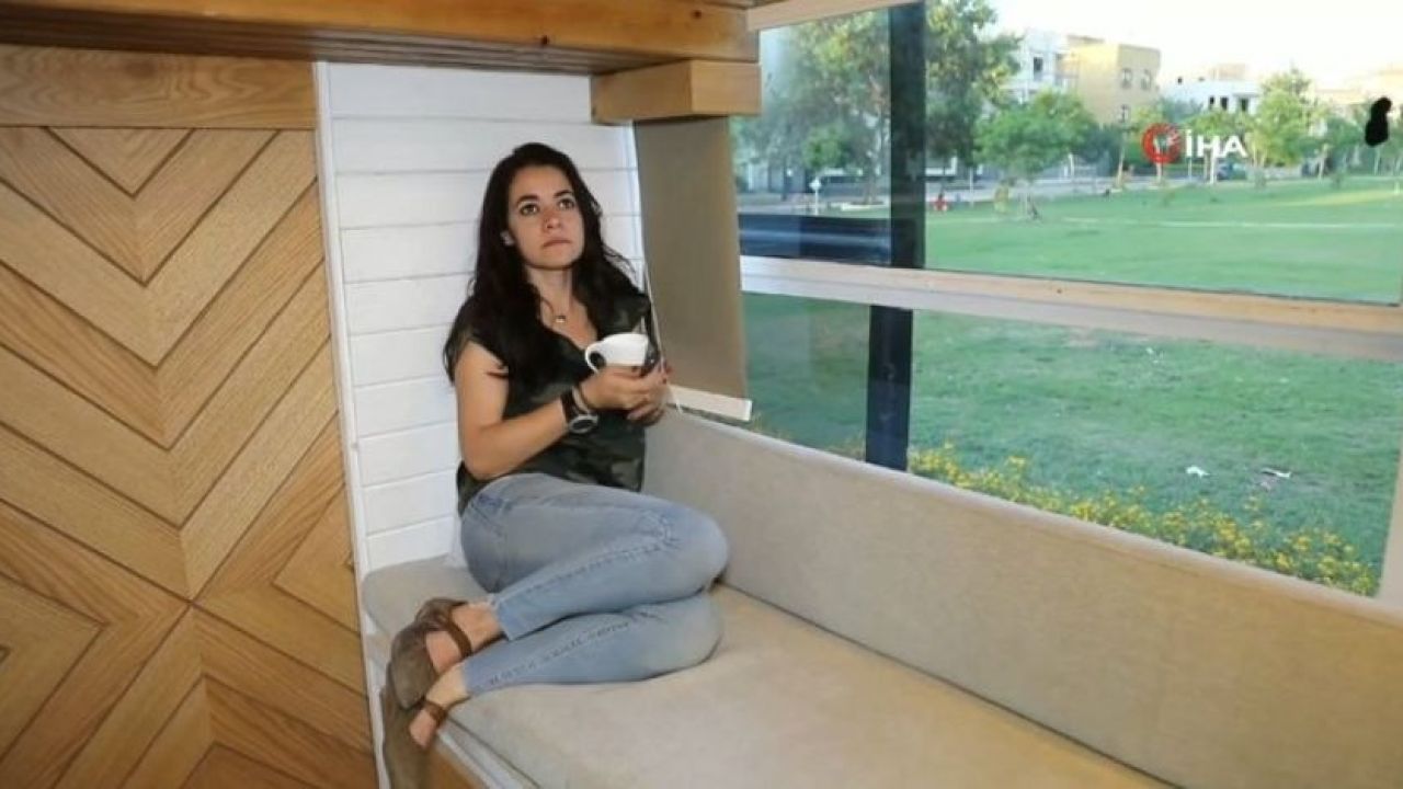 Mısırlı ralli yarışçısı Yara Shalaby, kendisi ve 11 yaşındaki oğlu için satın aldığı otobüsü karavana çevirdi.
