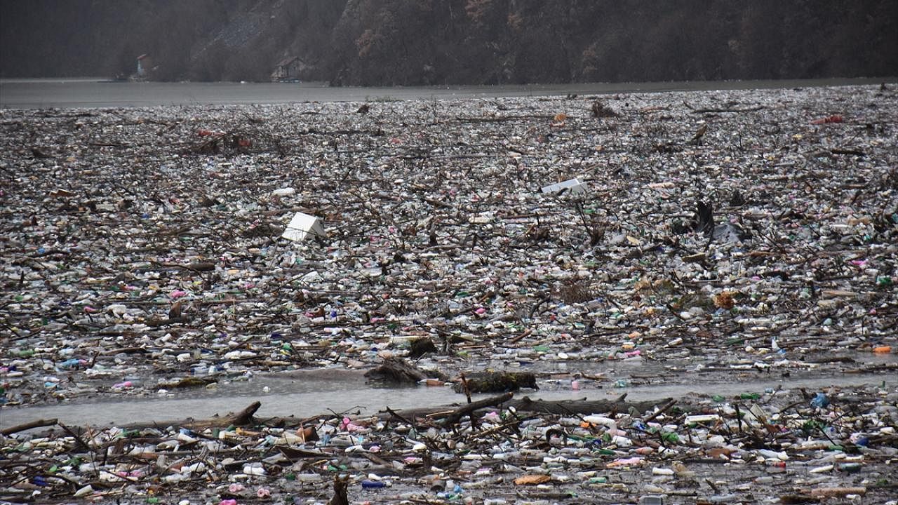 Sırbistan ve Karadağ`dan da geçen Drina Nehri`nin Bosna Hersek`in doğusundaki Visegrad şehrindeki bölümünün yüzeyinde, bölgedeki yağışların da etkisiyle tonlarca çöp ve plastik atık birikti.