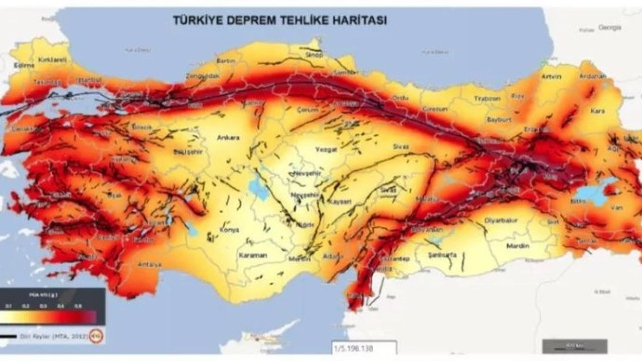 MTA diri fay hatları haritası verilerine göre en uzun diri fay Kuzey Anadolu hattı, İstanbul ve Ankara'da ise diri fay görünmüyor. Ancak İstanbul ve Ankara yakınlarında bulunan diri fay hatları bu illerde de risk teşkil ediyor.