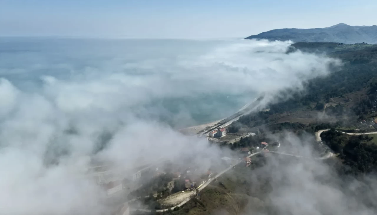 Oluşan sis sebebiyle görüş mesafesinin azaldığı bölgede, Karadeniz'in üzeri kısmen sis bulutlarıyla kaplandı.