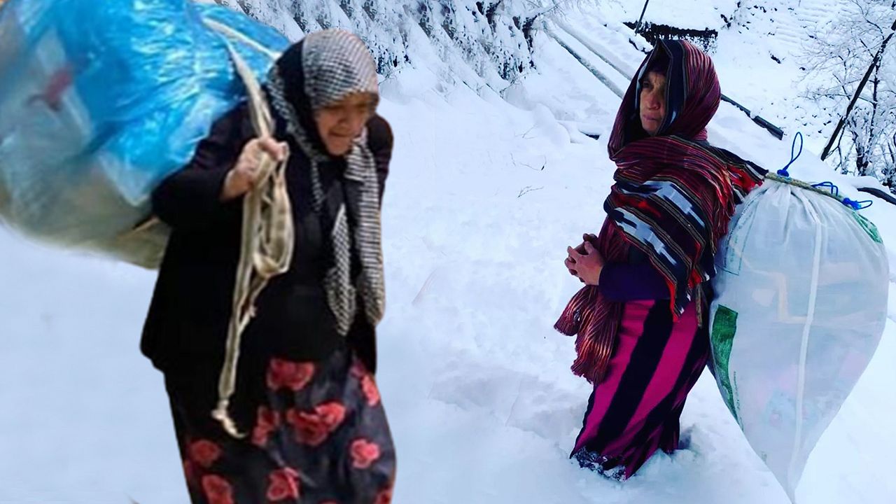 Karadeniz Bölgesi’nde kadınlar da kıyafet, yiyecek gibi ihtiyaçları yükledikleri çuvalları sırtlarında taşıyarak merkeze ulaştırıyor.