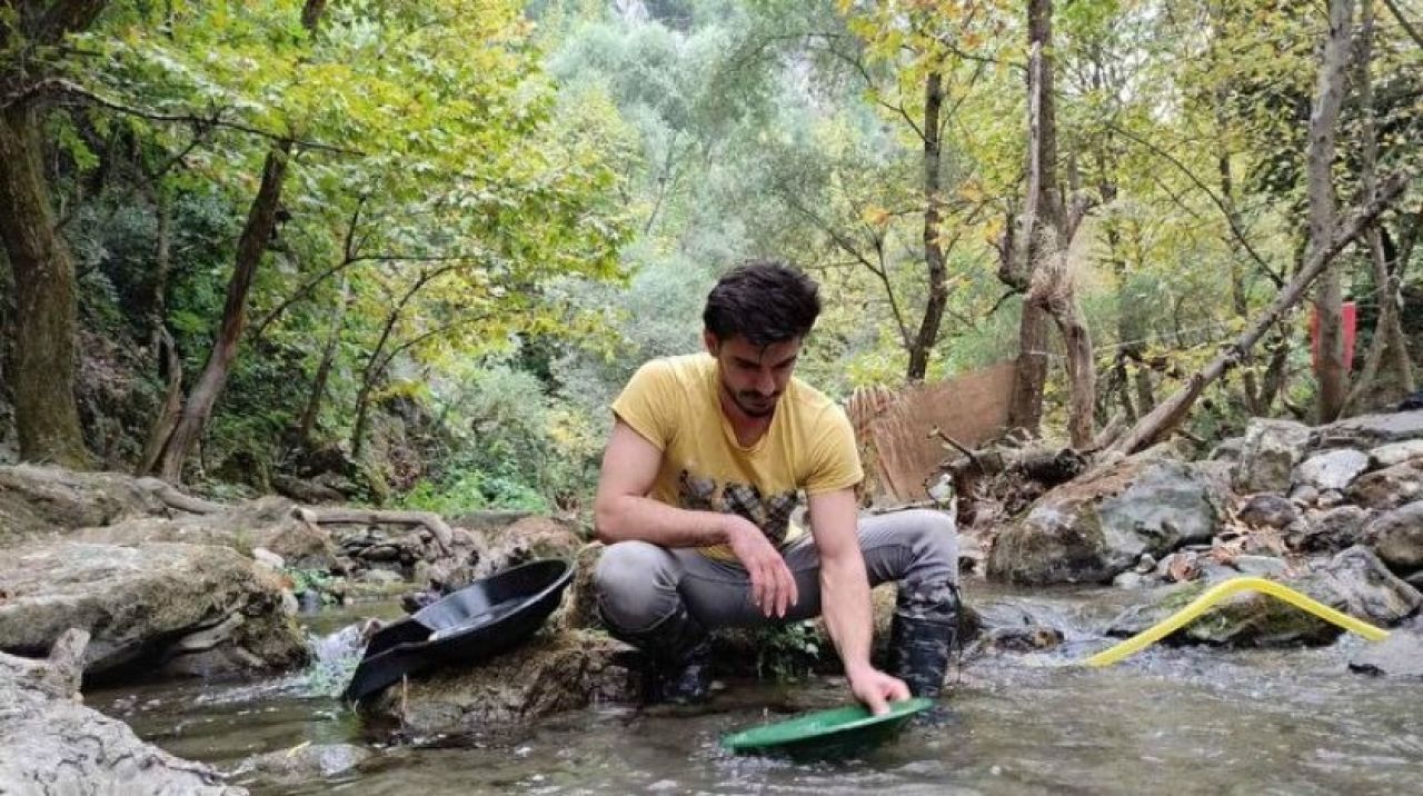 6 yıldır derelerde doğal altın aradığını ifade eden Emre Aydın, Altın avcısıyım Bu işe 6 yıl önce hobi olarak başladım. Bu altın doğada her yerde bulunuyor. Bu sadece aramasını ve yerini bileceksin.