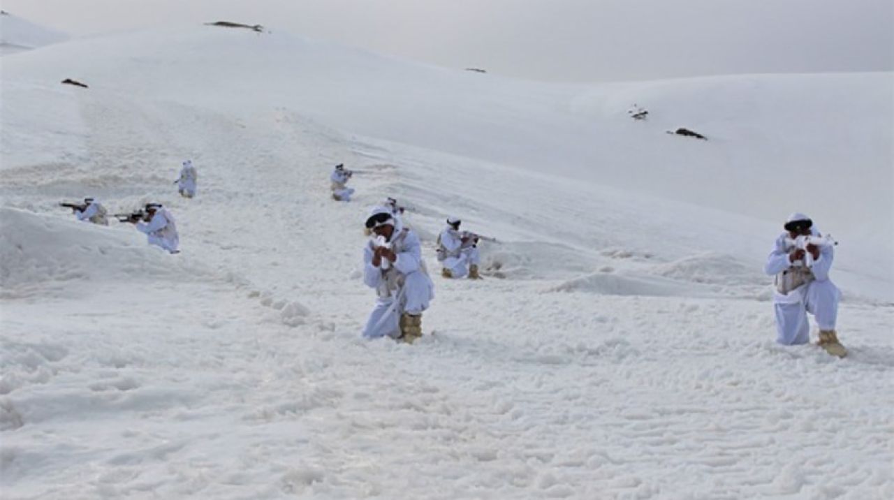 Hakkari`nin Yüksekova ilçesinin İran sınırındaki 3 bin 100 rakımlı Tuğ Tepe Üs Bölgesinde sınır güvenliğini sağlayan kahraman Mehmetçik, mayıs ayına rağmen ağır kış şartlarının hüküm sürdüğü bölgede bir yandan PKK`lı teröristlerle bir yandan da kaçakçılıkla mücadele ediyor.
