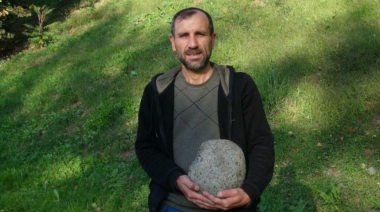 Ayağımla dokununca ağırlığını fark ettim. Kucaklayınca bu sefer daha ağır olduğunu fark ettim. Tarttırdım ve 11 kilo 670 gram geldiğini gördüm. Bunu araştırmaya karar verdim. Analizini yaptırdık. Analiz neticesinde içinde 24 element olduğunu fark ettik. İnternetten yaptığım araştırmalarda da benzer taşların olduğunu gördüm. İnsanlık için faydalı olabilir diye bunu gündeme getirmedim. Uzun bir süre sakladım çünkü araştırmalarımı sürdürdüm. Daha iyi bir neticeye varmak istedim. Değerli kurumlara başvurdum, olumlu yanıt alamadım. Ülkemizde bu araştırmaların olmamasıyla alakalı üzüntü duydum. Üzüntümü paylaşmak yerine araştırmalarıma devam ettim. Değişik denemelere tabi tuttum. Kırdığım parçaları yakıp erittim ve maddenin değiştiğini gördüm. Bunu kendime dünya dışından gelen bir mektup, bir mesaj olarak algıladım. Günümüzde bunu artık paylaşma zamanının geldiğini fark ettim. İnsanlık için belki bir faydası olur diye paylaşmak istedim. Çünkü günümüzde ülkemizde uzay ajansları değerli çalışmalar yapıyor. Biraz da bu çalışmalara destek olmak için çıkarttım. Bu elementlere, bu bilgilere ulaşabilmek için milyon dolarlar harcanıyor. Bu elementler bu taşla elimize gelmiş. Ben istiyorum ki bu değerlendirilsin, araştırılsın.