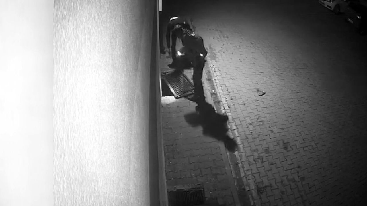 Havalandırma penceresinden kaçmaya çalışan hırsız boşlukta sıkıştı. Mazgalı kaldırarak kaçmaya çalışan şüpheli, durumu fark eden bekçilerle karşılaştı.