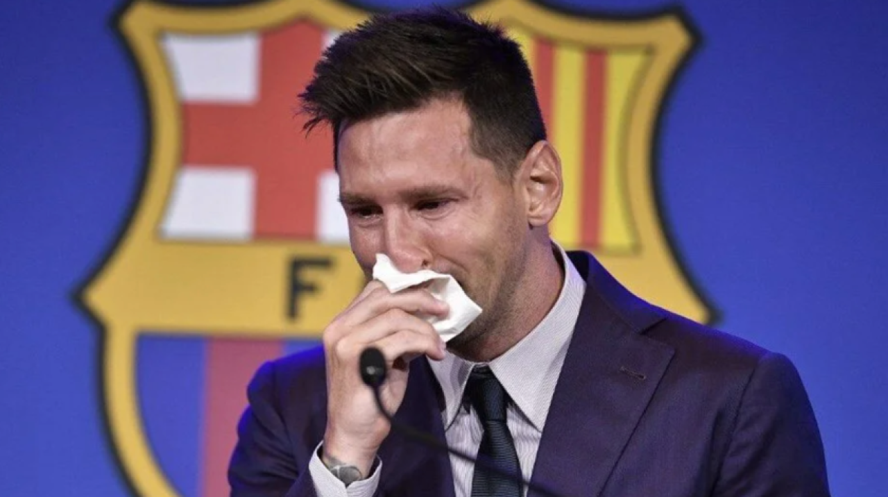 Barcelona'nın ayrılığını resmen açıkladığı Lionel Messi, düzenlediği basın toplantısında gözyaşlarını tutamamıştı.