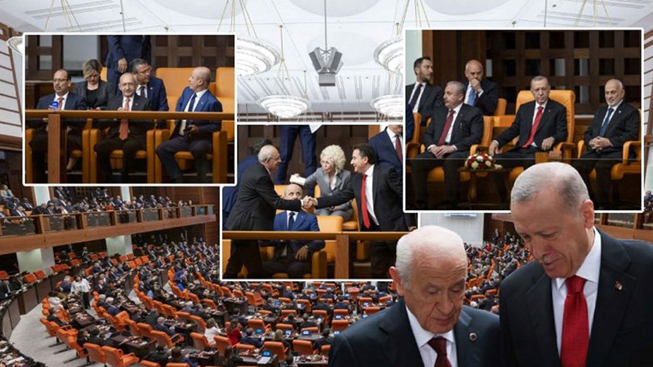 Türkiye Büyük Millet Meclisi'nde (TBMM) 28'inci yasama dönemi başladı. İlk oturumu en yaşlı üye sıfatıyla MHP Genel Başkanı Devlet Bahçeli, Geçici TBMM Başkanı olarak yönetiyor. Milletvekilleri, illerin alfabetik sıralamasına göre yemin ediyor. İşte Meclis'ten kareler...