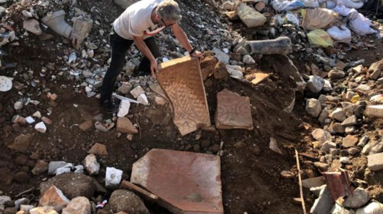 Bölgeye gelen ekipler, molozlar arasında inceleme yaptı. Yapılan incelemelerde, Roma dönemine ait olduğu tahmin edilen lahit mezarına ait desenli parçalar bulundu.