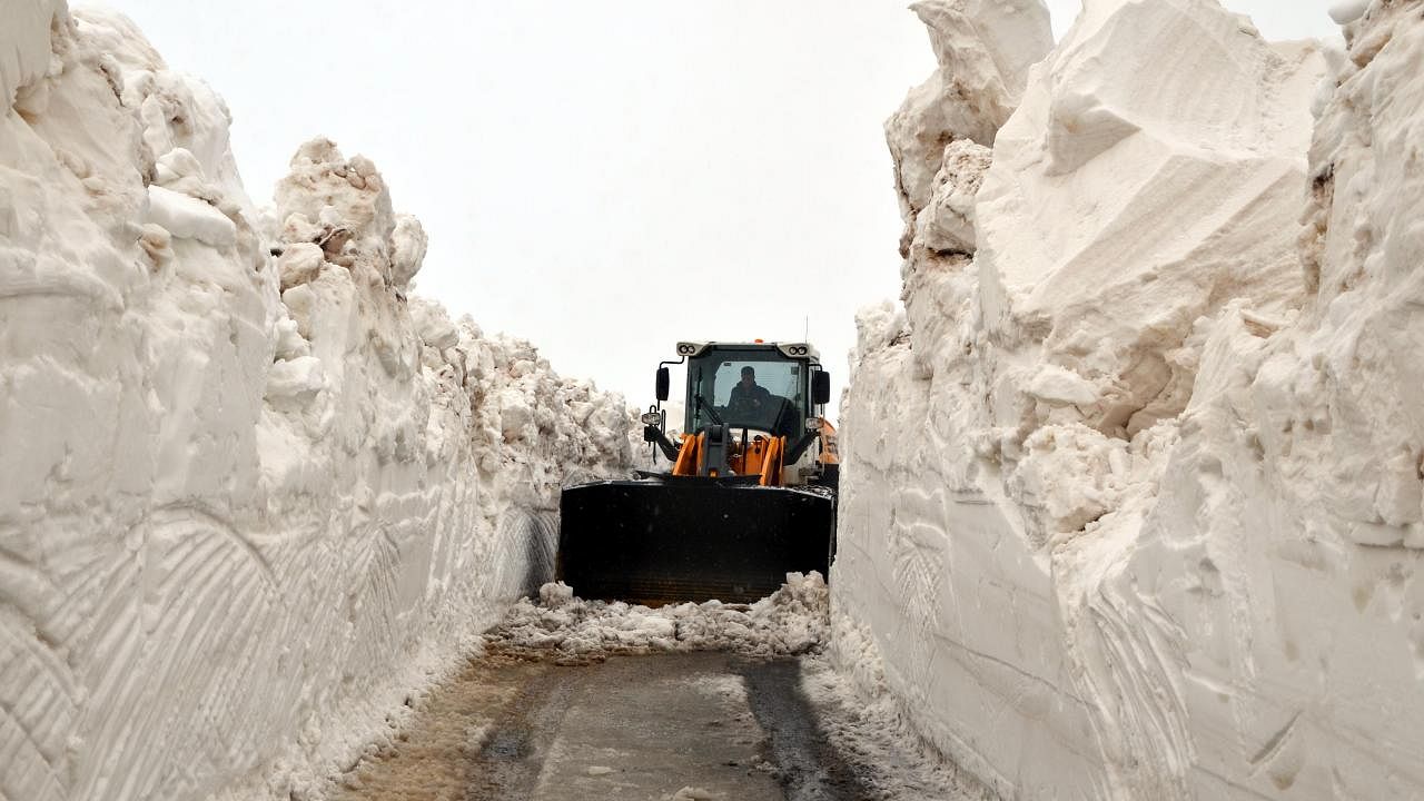 Kentte 10 köy ve 21 mezraya ulaşımın sağlandığı Üçevler grup köy yolunun 2 bin 600 rakımlı Çavuştepe mevkisinde çalışma yürüten ekipler, çığ riskine rağmen yolu açmak için çaba gösteriyor.