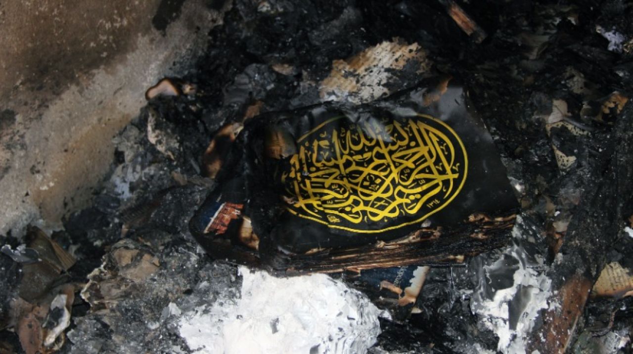 İkinci katta bulunan ve yanan eşyalar arasında bulunan çift taraflı ‘Besmele’ bulunan kitapçığın kapağının ise alevlerden etkilenmediği görüldü. Sülüs hat sanatıyla yazıldığı öğrenilen ve ayna yazısı olarak adlandırılan ‘Bismillâhirrahmanirrahim’ yazısının çevresi tamamen yanarken, ‘Besmele’ yazısı yanmadı.