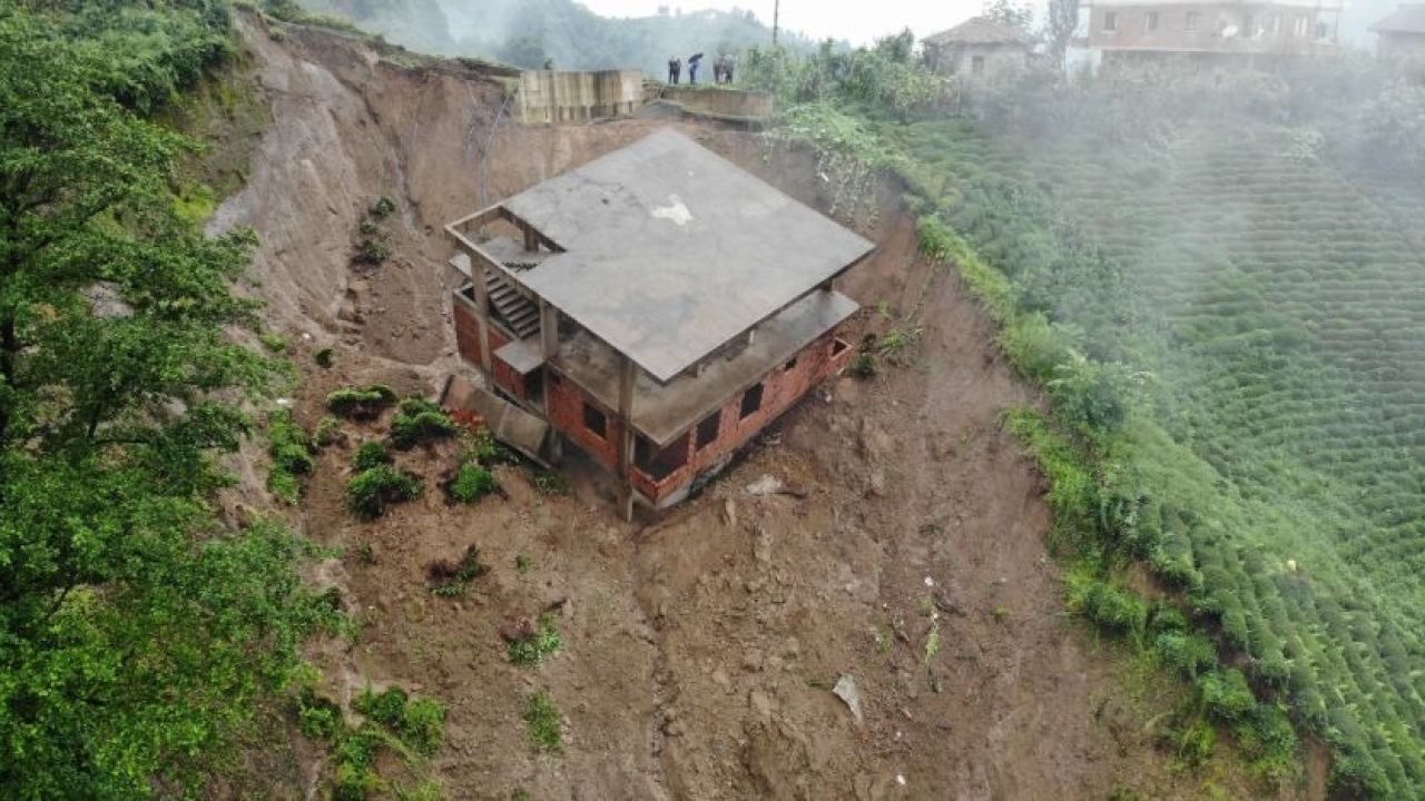 Saat 09.17 sularında ise yolun hemen alt kısmında bulunan inşaat halindeki 3 katlı bina toprakla birlikte kayarak yan yattı.