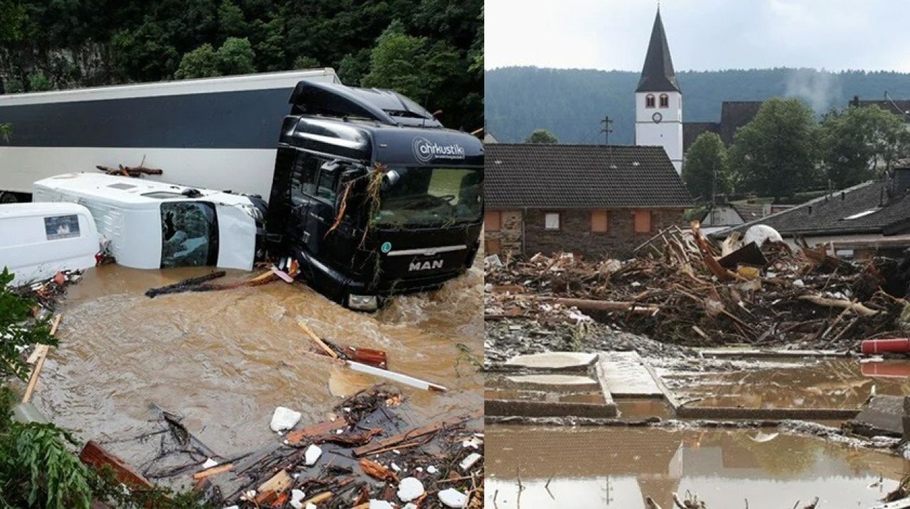 Dün gece Almanya’nın Rheinland-Pfalz eyaletindeki Eifel bölgesinde yoğun yağış nedeniyle büyük bir sel meydana geldi. Ren Nehri'ne dökülen Ahr nehrinin taşarak evlere büyük hasar verdiği bildirildi.