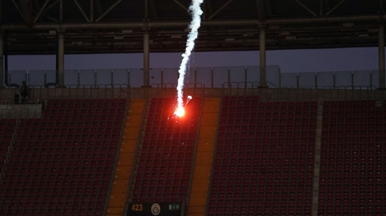 Türk Telekom Stadyumu'nda oynanan müsabakanın 7. dakikasında sarı-kırmızılıların hücum ettiği anda, dışarıdan sahaya işaret fişeği atıldı.u0026nbsp;