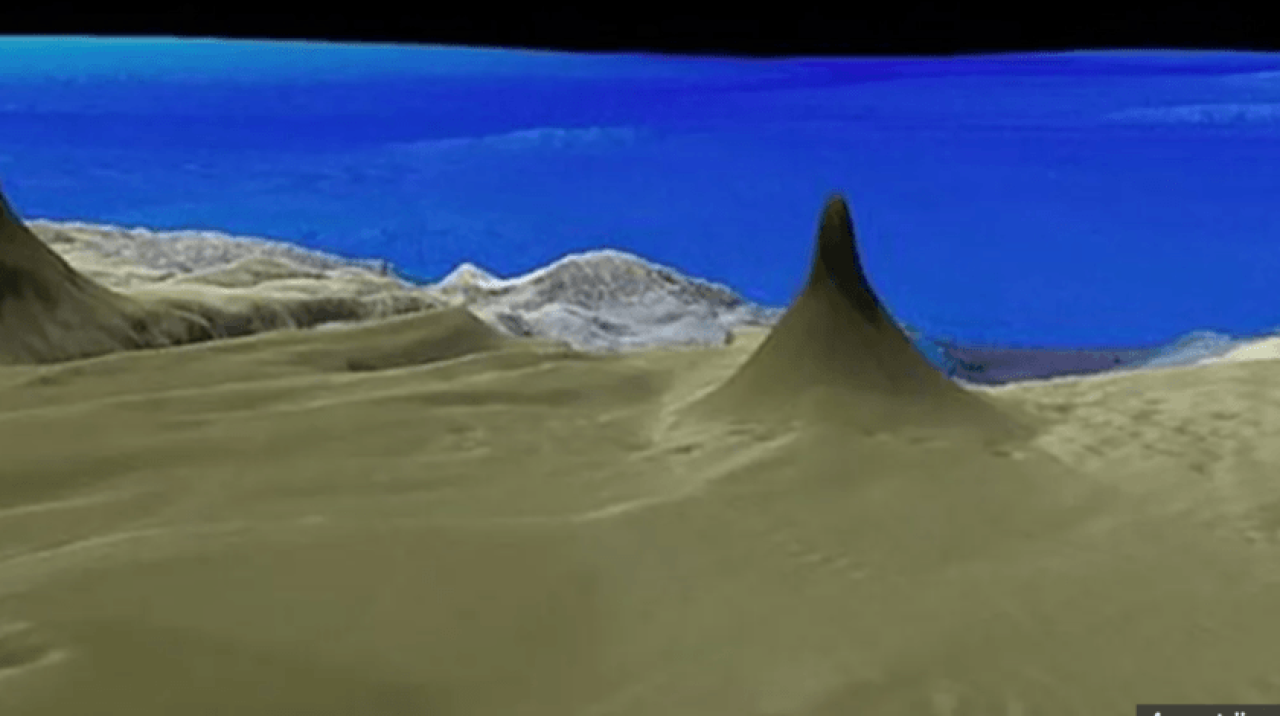 Araştırmacılar, bıçak şeklindeki resifin uzunluğunun 500 metre olduğu, su yüzeyinden yüksekliğini ise 40 metre olduğu belirtti.