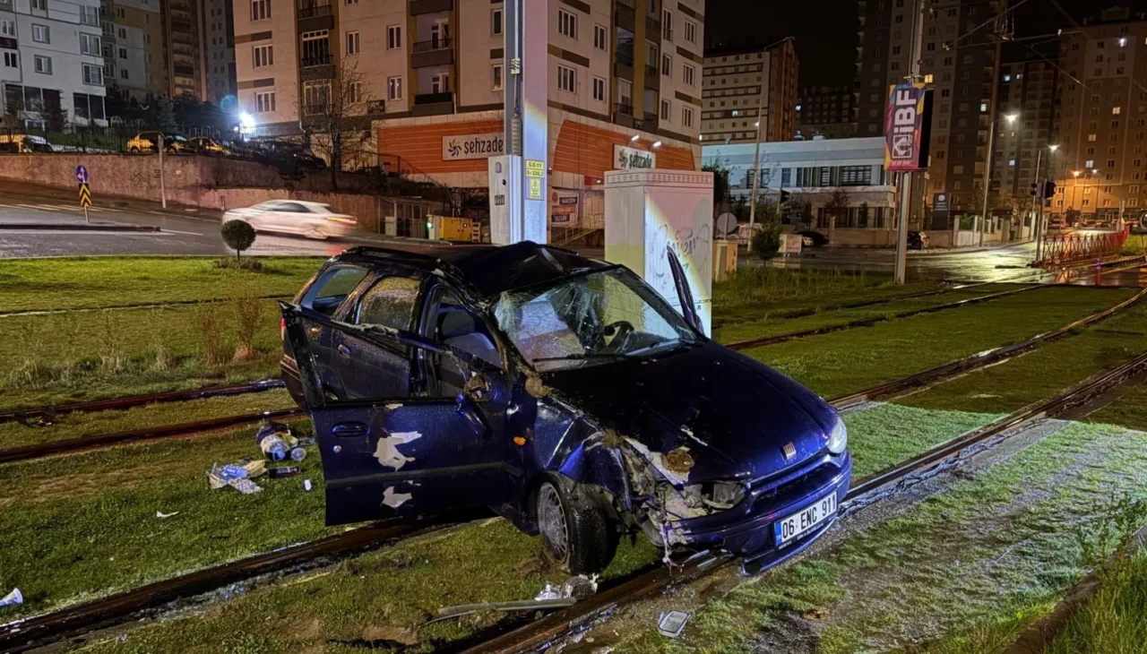 Edinilen bilgiye göre, M.K. yönetimindeki 06 ENC9 11 plakalı otomobil, yağışlı havanın etkisiyle kontrolden çıkarak tramvay yoluna girdi. Savrulan araç, tramvay hattındaki direğe çarparak durabildi.