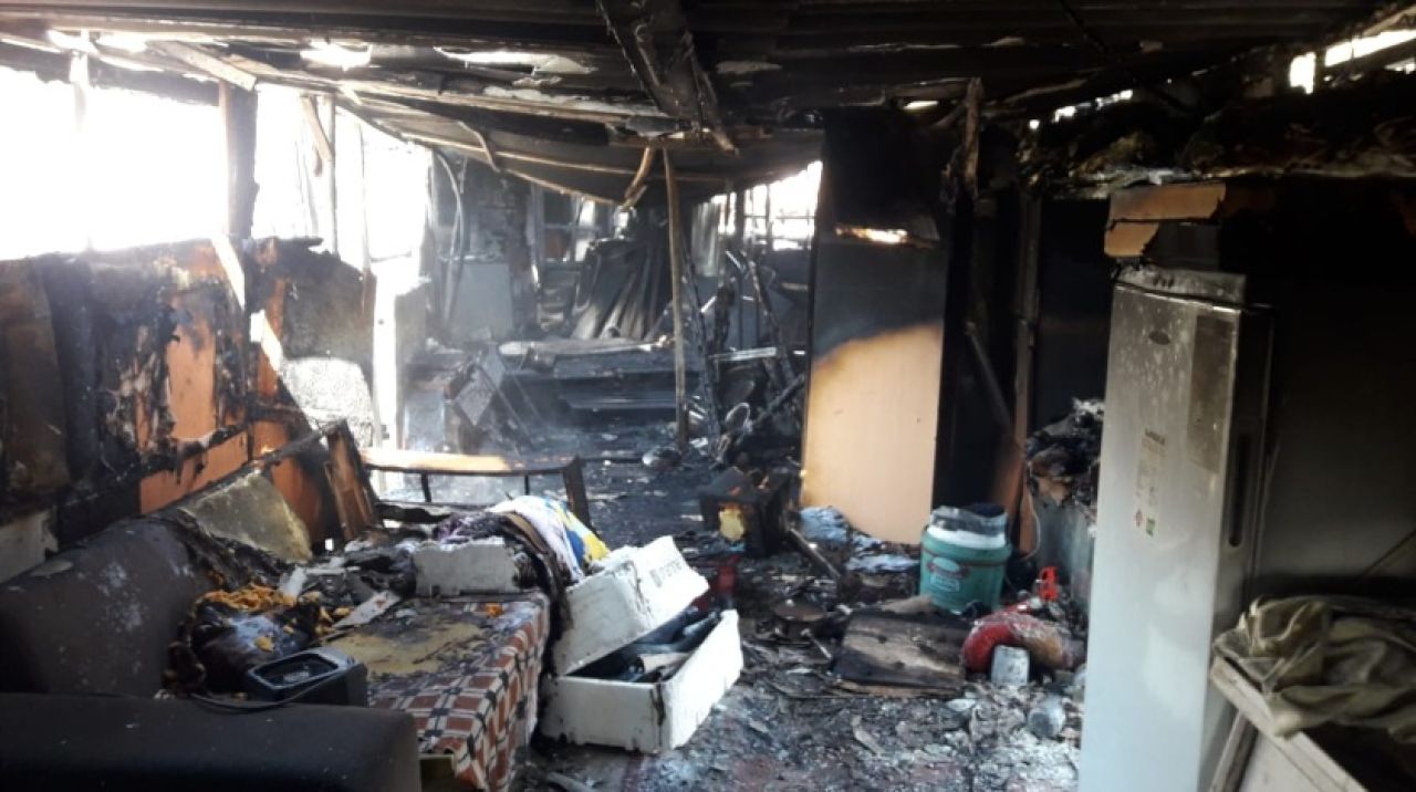 Alev topuna dönen baraka ve konteyner evde söndürme çalışmaları yapan İtfaiye ekipleri evin içerisinde kontrol yaparken tüm kitapların, eşyaların yandığını gördü.