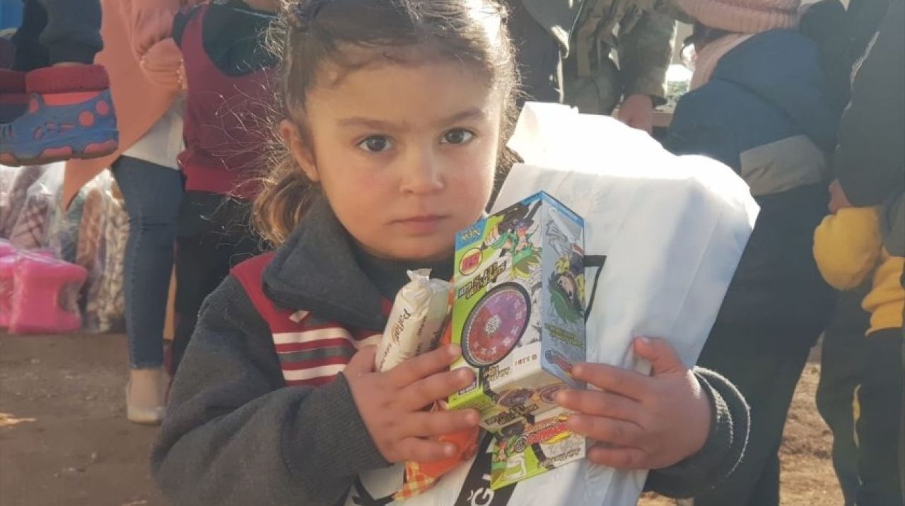 Yetim çocuklara da oyuncaklar hediye edildi. İnsani yardım dağıtım programına, bölgede görev yapan Tümgeneral Yılmaz Yıldırım ve Kıdemli Başçavuş Serdar Ünal da katıldı.