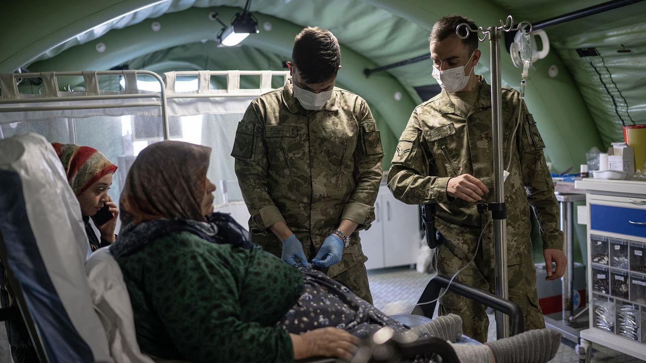 Milli Savunma Bakanlığı'nın Kahramanmaraş'ta kurduğu Seyyar Sahra Hastanesinde, Türk Silahlı Kuvvetleri ile Azerbaycan Silahlı Kuvvetleri bünyesindeki askeri hekimler, depremzedelere sağlık hizmeti veriyor.