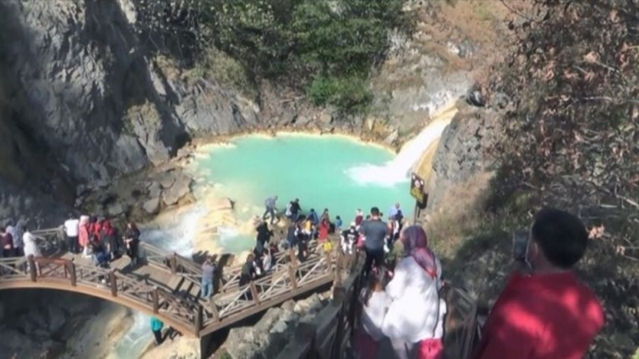 Sosyal medyada gördük ve ziyaret etmeye karar verdik. Sonbaharla birlikte burada farklı bir ortam oluşmuş. Ağaçlardan yapraklar dökülüyor. Çevredeki ağaçların renkleri güzel bir görüntü oluşturuyor. Buraya ailemizle Trabzon’dan geldik ve geldiğimize değdi dedi.