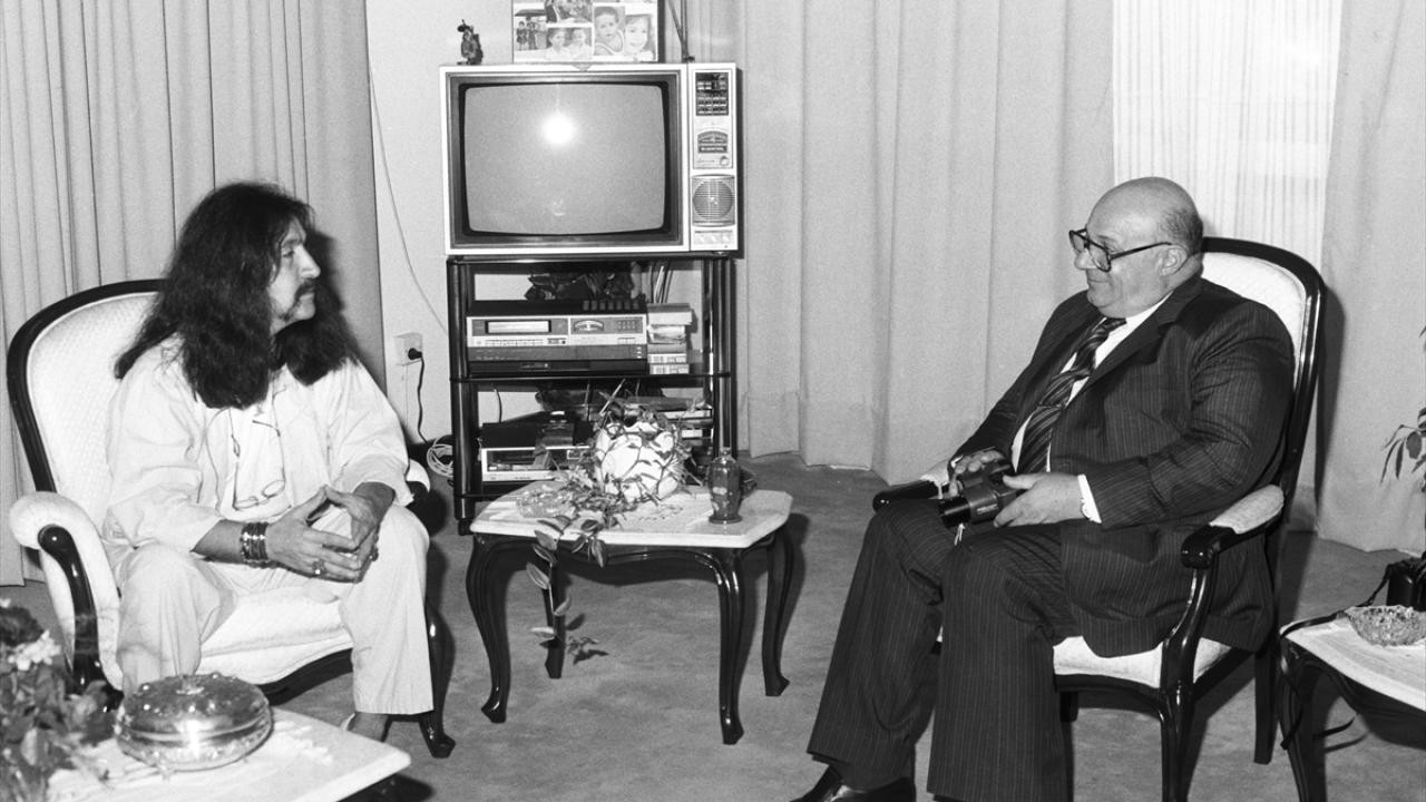 19 Eylül 1988`de dönemin KKTC Cumhurbaşkanı Rauf Denktaş (sağda), Manço`yu kabul etmişti. (Arşiv)