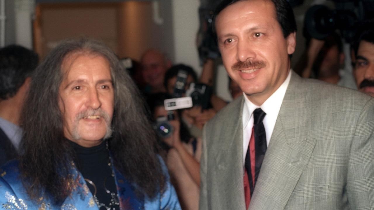Manço (solda), 22 Eylül 1995`te dönemin İstanbul Büyükşehir Belediye Başkanı Recep Tayyip Erdoğan (sağda) ile bir araya gelmişti. (Arşiv)