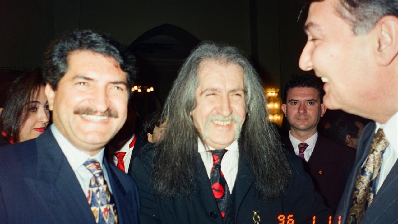 Manço, 10 Ocak 1996`da dönemin CHP Genel Başkanı, Dışişleri Bakanı ve Başbakan Yardımcısı Deniz Baykal (sağda) ile Kültür Bakanı Fikri Sağlar`ın (solda) sanatçılar adına verdiği resepsiyona katılmıştı. (Arşiv)