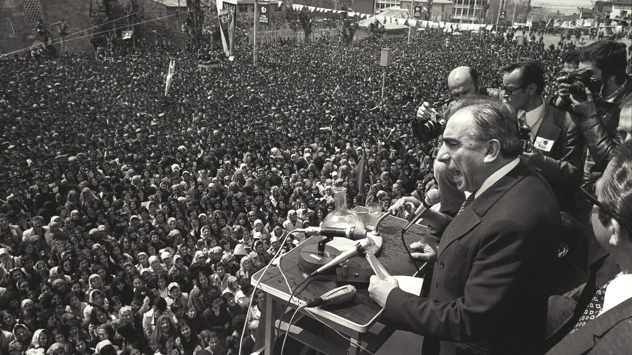 Alparslan Türkeş, 4 Nisan 1997'de geçirdiği kalp krizi sonucu hayatını kaybetti. Milli Birlik Komitesi üyesi, Başbakanlık Müsteşarı Albay Alparslan Türkeş'in 27 Mayıs 1960'ta çekilmiş bir fotoğrafı.