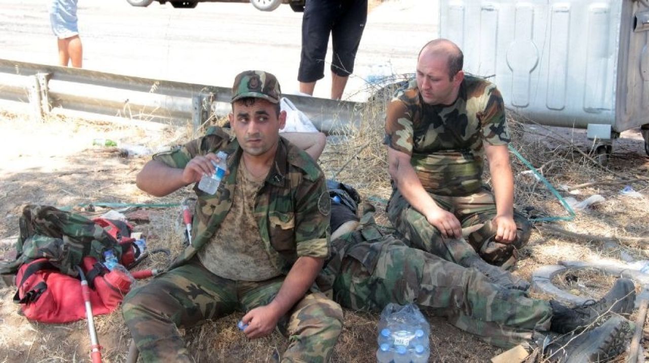 Asparan mevkiinde orman yangınına müdahale eden orman işçileri ile omuz omuza alevlere karşı savaş veren Azerbaycan itfaiye ekipleri yangın sonrası tekrar bir araya gelerek verilecek yeni görevi beklemeye başladılar.