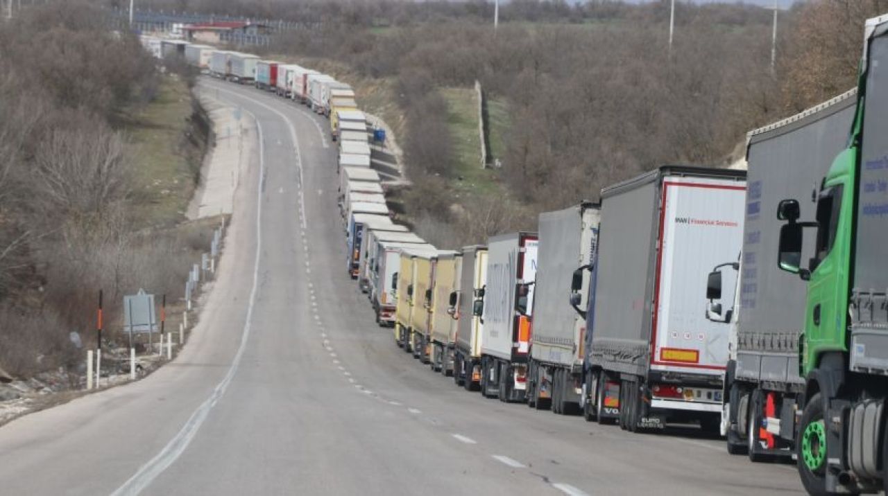 Hamzabeyli'den çıkış yapmak üzere ihracat yükü taşıyan tırların yoğunluğuna Bulgaristan'ın alımda yanıt verememesi üzerine tır kuyrukları uzamaya başladı.