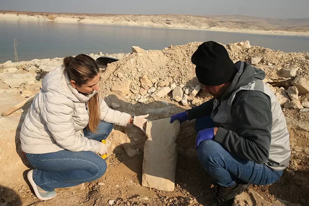 Adıyaman'ın Samsat ilçesindeki Atatürk Baraj Göleti'nde su seviyesinin düşmesiyle, Şanlıurfa'daki Göbeklitepe'de bulunanlara benzer "T" şeklinde taşlar ortaya çıktı.