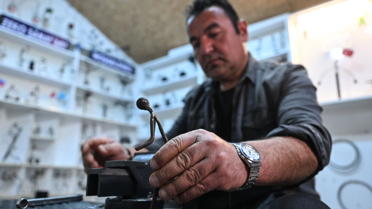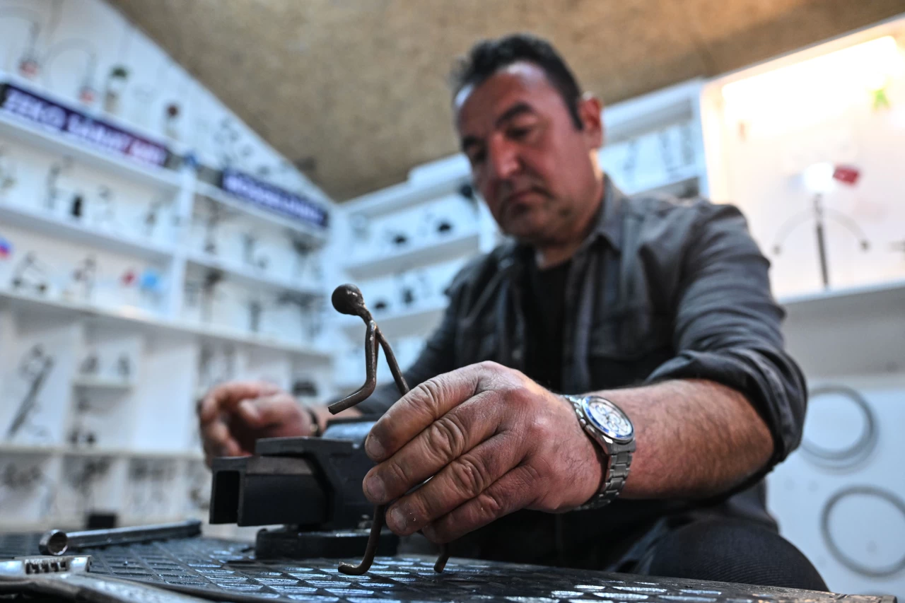 Demir ustası Zekeriya Kurtoğlu, demir parçalarından yaptığı figürlerle meslek hayatı boyunca edindiği becerilerini sanata dönüştürerek, atölyesinde özgün eserler üretiyor.