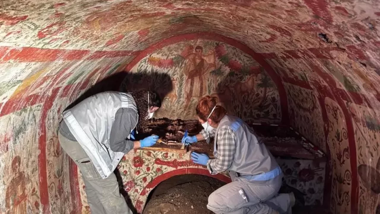 2025 yılı kazı sezonunda açığa çıkarılan hipogee mezar ise özellikle freskleriyle dikkat çekti. Güney duvarı büyük ölçüde tahrip olan mezarın doğu, batı ve kuzey duvarları ile tavanı neredeyse tamamen sağlam kaldı. Bu duvarlarda yer alan insan figürleri, bölgedeki diğer örneklerden ayrılıyor.
