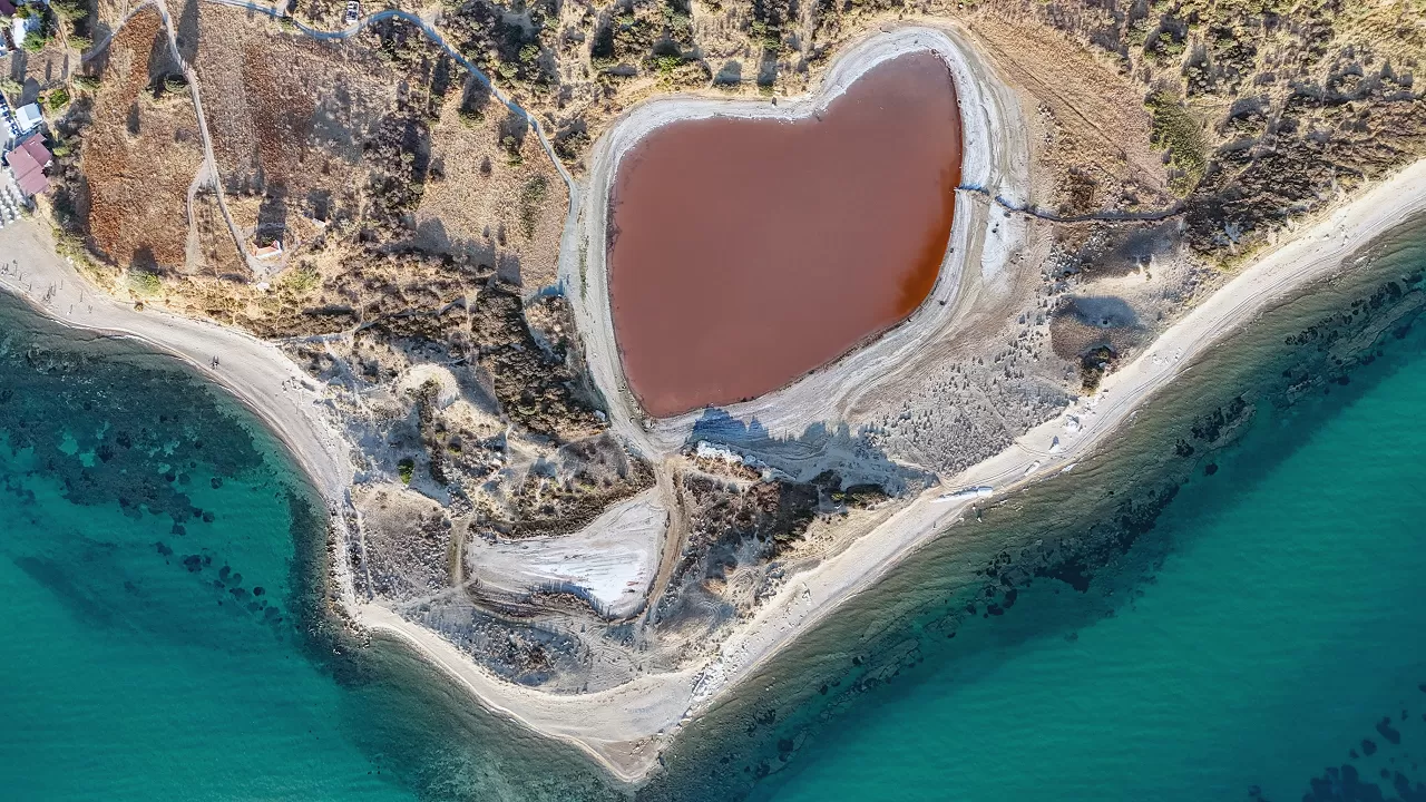 Pembe Göl, aynı zamanda "Kalpli Göl" olarak da biliniyor.
