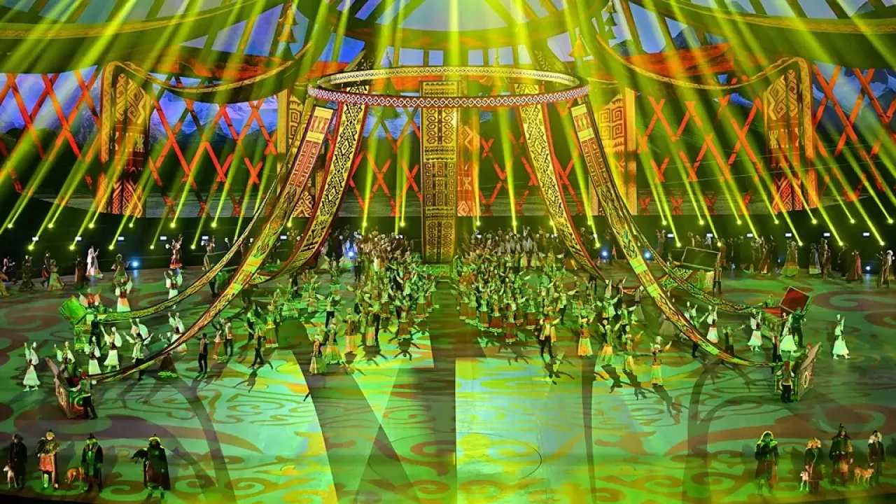 Gösteri, Kazak bozkırının tarihini antik İskit savaşçılarından ve İpek Yolu tüccarlarından 15. yüzyılda Altın Orda ve Kazak Hanlığı'nın yükselişine kadar takip etti. Sanatçılar, bozkırın bir yurtun sembolik işlemeli panelleri altında toplandığı sahneleri tasvir ettiler .