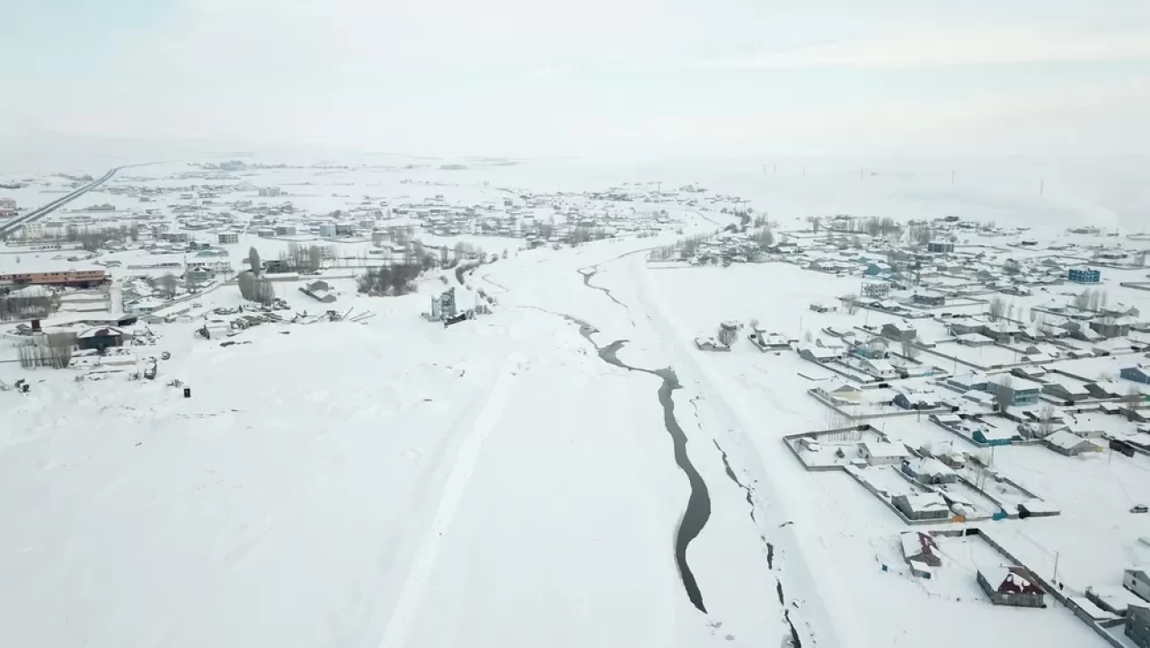 Beyaz örtüyle bütünleşen evler ve çevresi, havadan çekilen görüntülerle dikkat çekti.