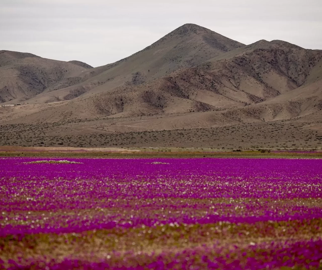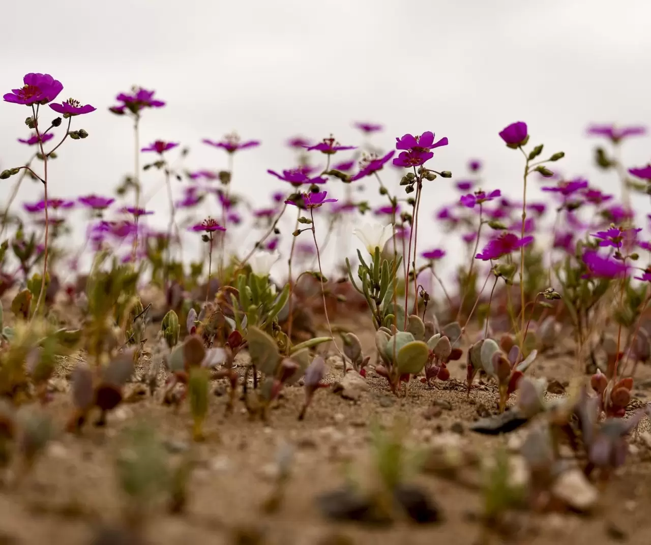 Dünyanın en kurak çölü olarak bilinen Atacama, normalde bitki yetiştirmeye uygun olmayan sert iklimiyle dikkat çekiyor. Ancak son günlerde kaydedilen aşırı yağışlar, çölü mor ve beyaz tonlarında çiçeklerle kapladı.